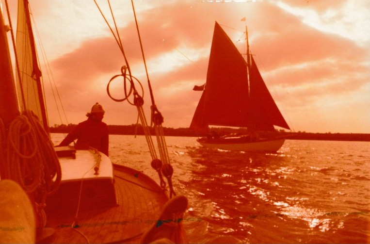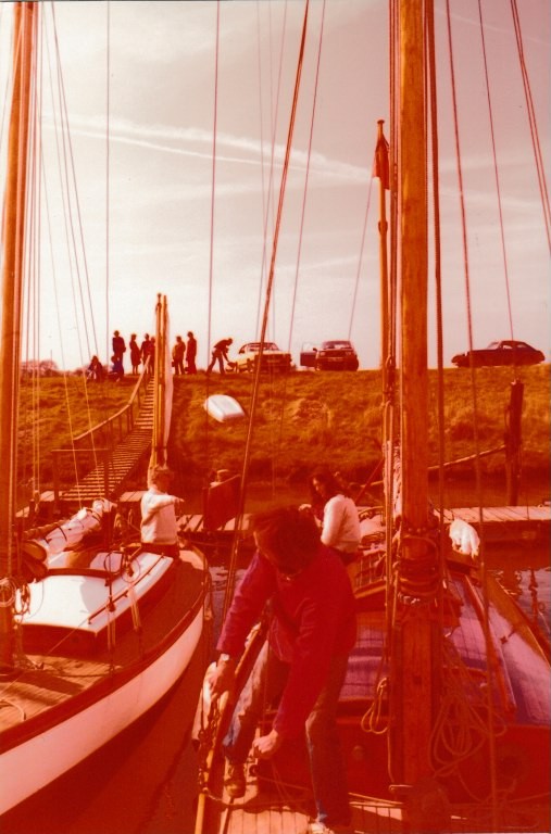 The large jib was unsightly and clumsy in a blow. It was cut down for 1981. A full riffing sail and spar, as original, was made for 1982